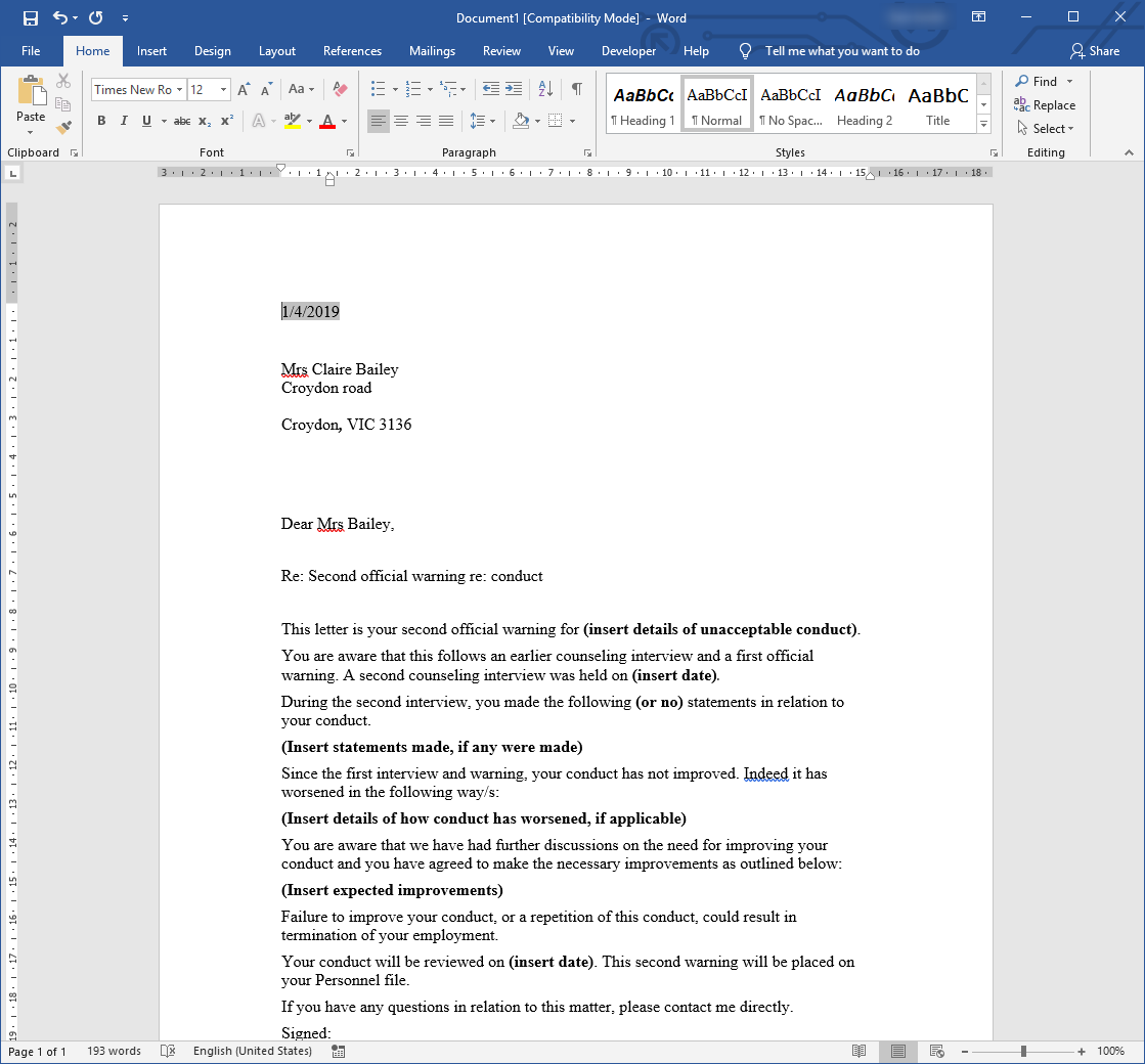 It should include basic employee and compensation information in compliance with federal and state labor laws. What does h & are block do for you? How to write a file note for a study? This is to be used when a warning is not issued, however you would like to formally document an issue. **the longer that poor performance is allowed to continue, the more difficult it can be…